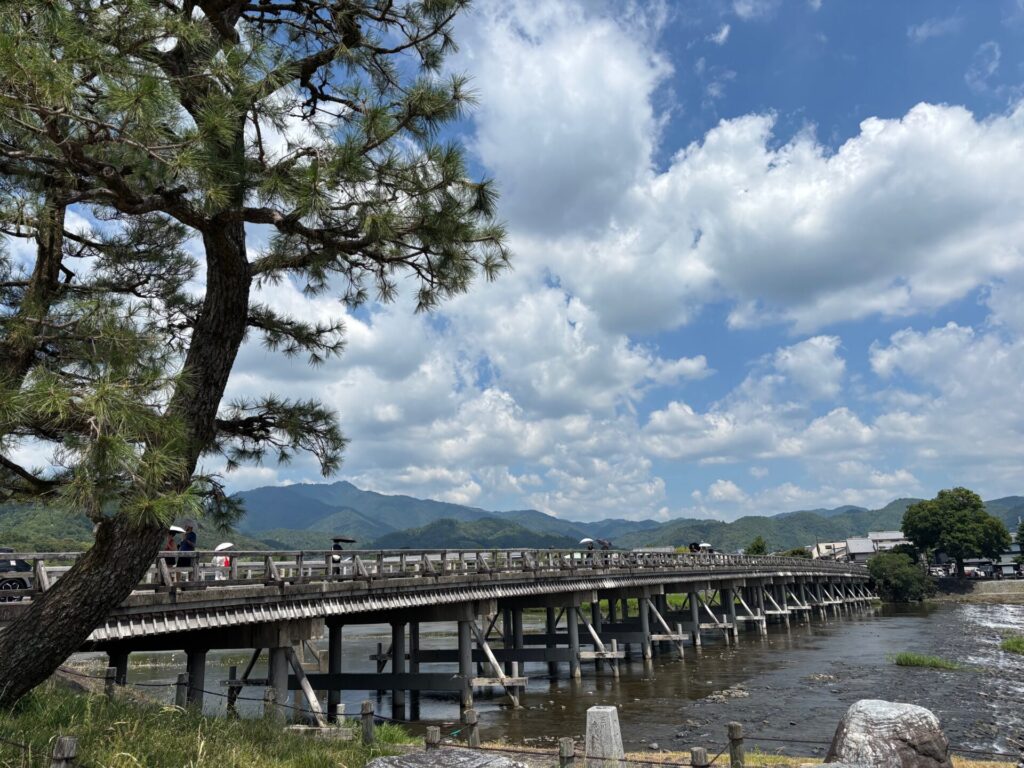ゆっくり観光しながら歩いて15分くらいで嵐山のシンボル『渡月橋』に到着!!普通に歩けば5分くらいで着きます(^^;)
