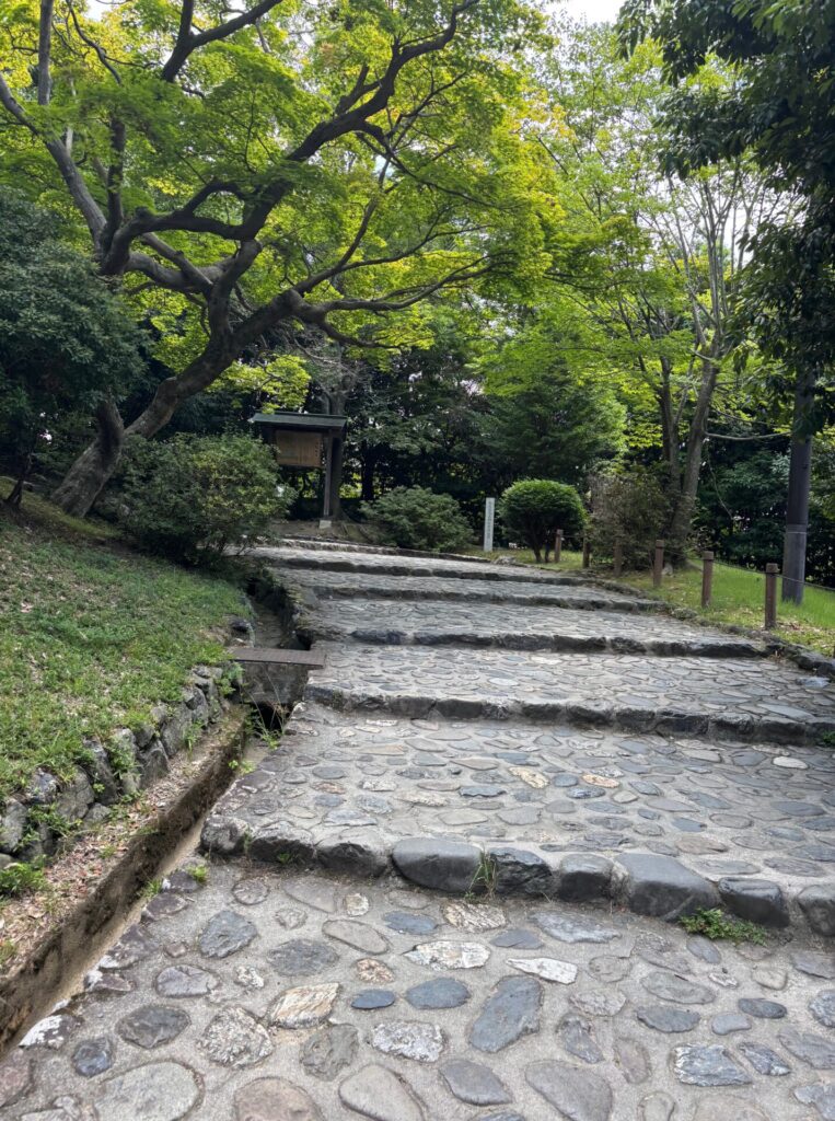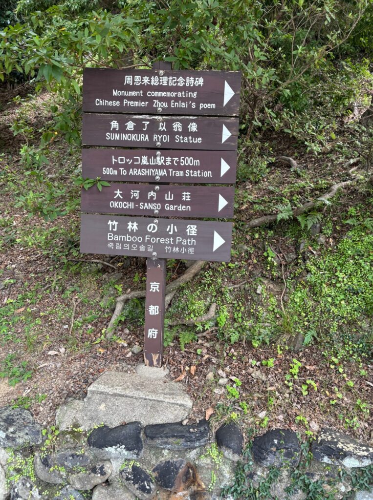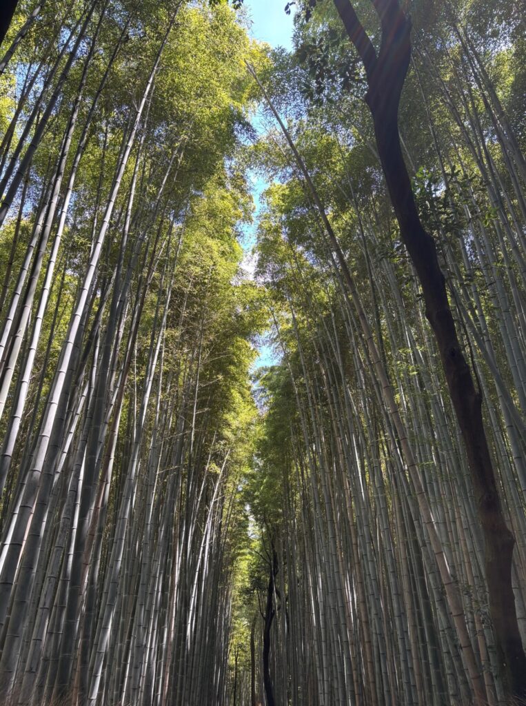 竹林の小径に到着!!見事な竹林で、幻想的な散策路でした。気温が高くとても暑かったのですが、爽快感を感じました。竹林の散策路を出た後は…