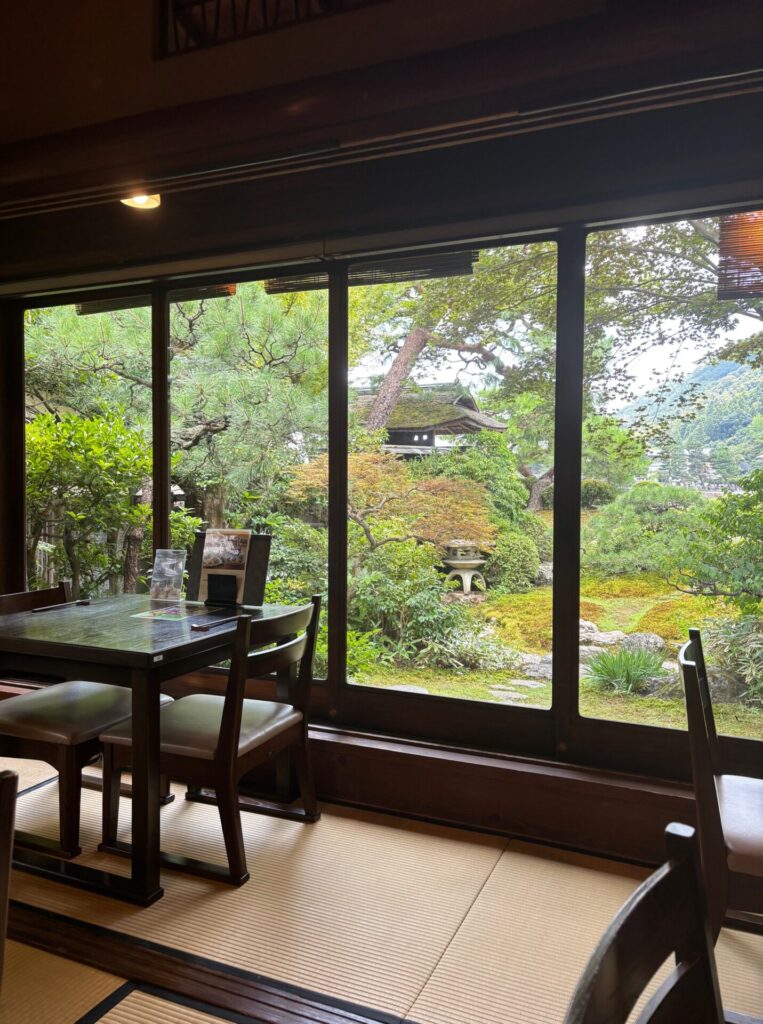 私たちが案内された席では、渡月橋を見ることが出来ませんでしたが、とても素敵な雰囲気の店内でした。