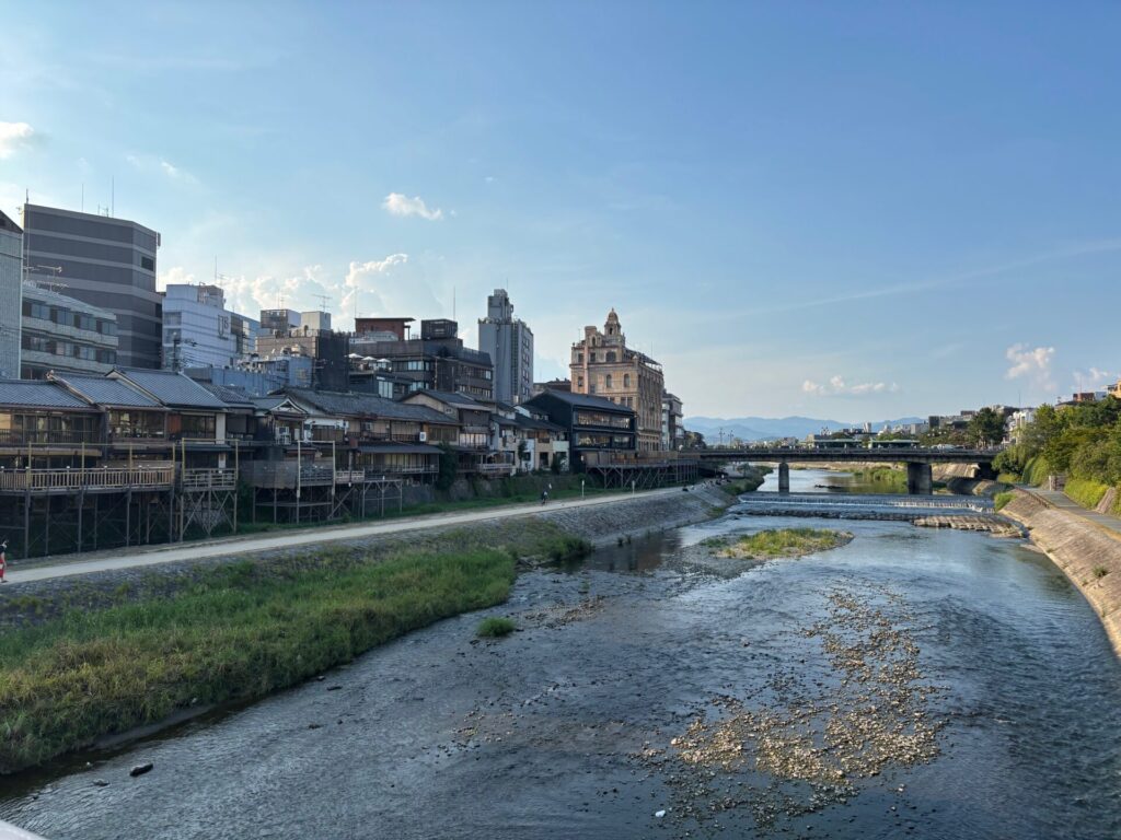 花見小路を後にし、鴨川の河川敷まで散策した後、四条河原からバスに乗り、京都駅に向かいました。