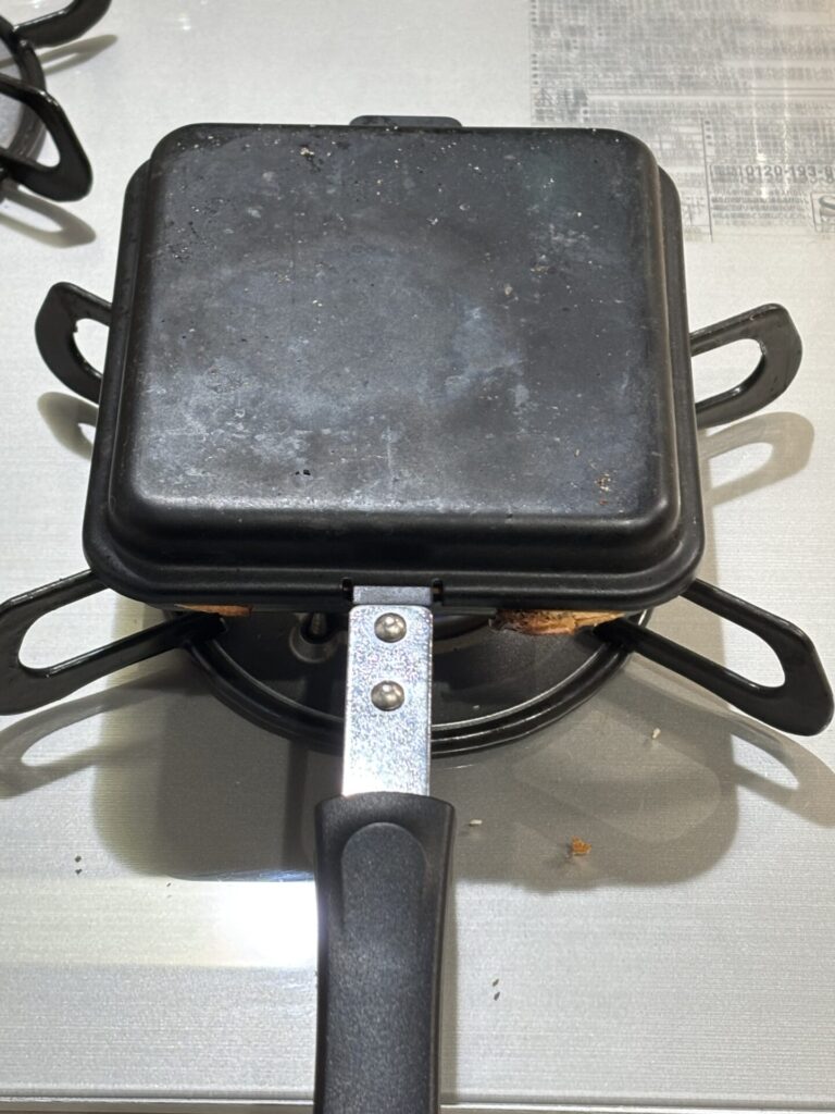 4.ホットサンドメーカーでひっくりながら焼いていきます。たまに焦げ具合をチェック!