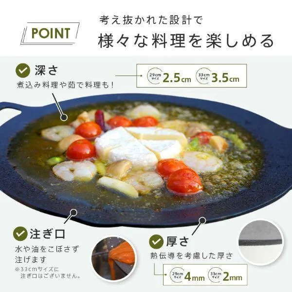 【寸法(長さx幅x高さ)・重量】直径29cmX幅35cm(取っ手あり)X深さ2.5cm